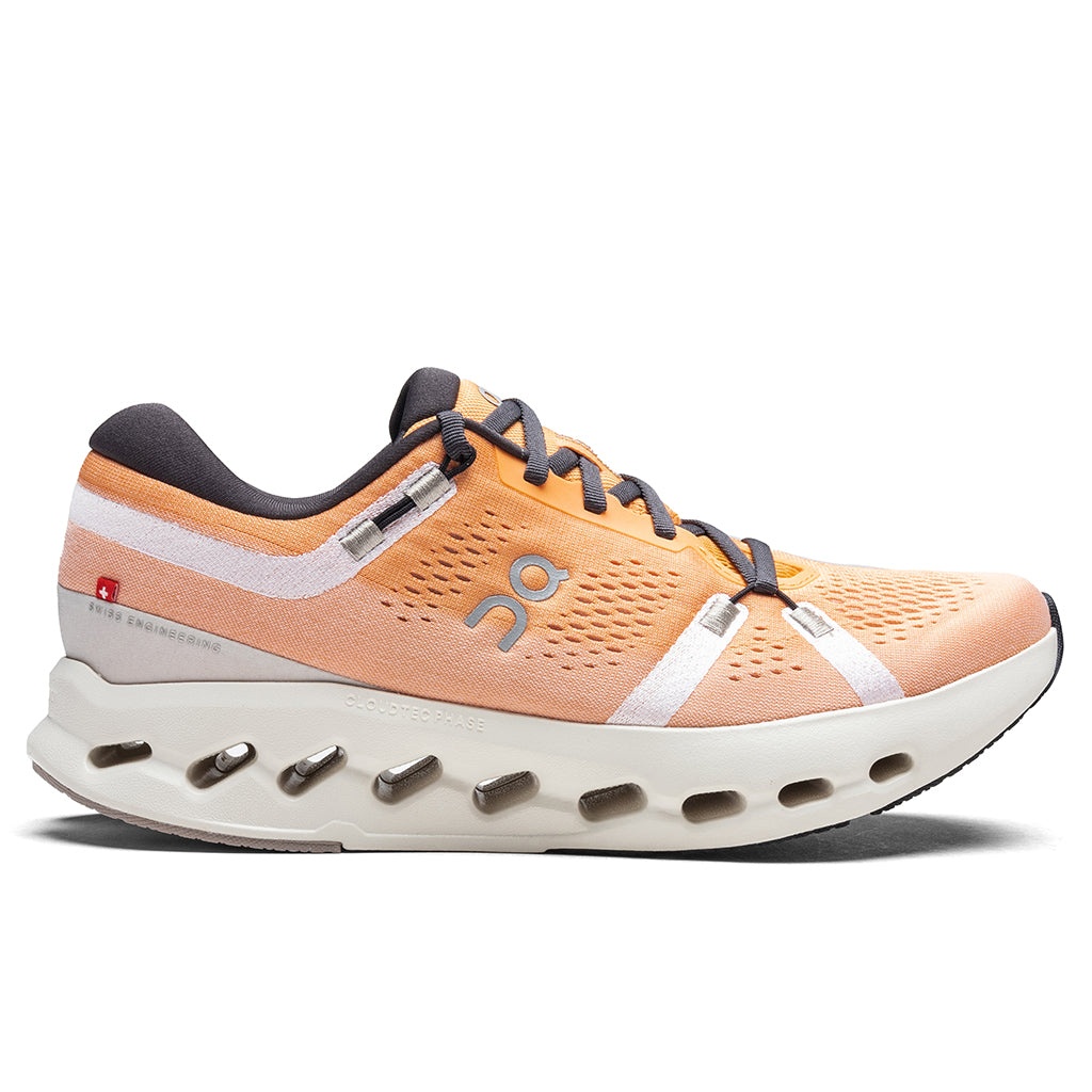 The Cloudsurfer 2 from On uses Finite Element Analysis (FEA) to optimise the midsole's geometry, creating a light and durable shoe with buttery-smooth transitions underfoot. This silhouette has a more durable outsole with thicker padding and smaller cavities in the tread. Built to last, this updated geometry supports an even smoother ride. The re-engineered upper features a more breathable mesh construction. The innovative CloudTec Phase® midsole ensures soft landing and smooth heel transitions. On's signature Helion™ Superfoam provides extra support. - Breathable mesh upper - Embroidered eyelets - CloudTec Phase® cushioning - Helion™ superfoam midsole - Rubber outsole - Weight: 261g - All sizes are listed in US Men's sizing unless stated otherwise - Style No: 3MF10123126