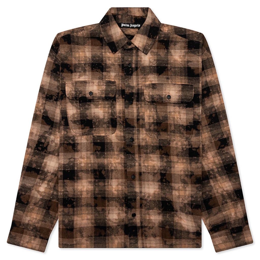 The Curved Logo Check Shirt in Brown/Off Whiteblends classic plaid styling with contemporary details. Made from a cotton and polyester blend, it features a spread collar, front button placket, and dropped shoulders for a relaxed fit. A bold logo print on the back adds a modern touch, while chest flap pockets, buttoned cuffs, and a straight hem complete the versatile design. Perfect for layering or standalone wear. - Cotton 60%, Polyester 40% - Plaid check pattern - Logo print to the rear - Spread collar - Front button placket - Drop shoulder - Long sleeves - Buttoned cuffs - Two chest flap pockets - Straight hem - Style No: PMGE043F24FAB0016003