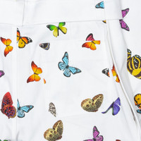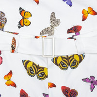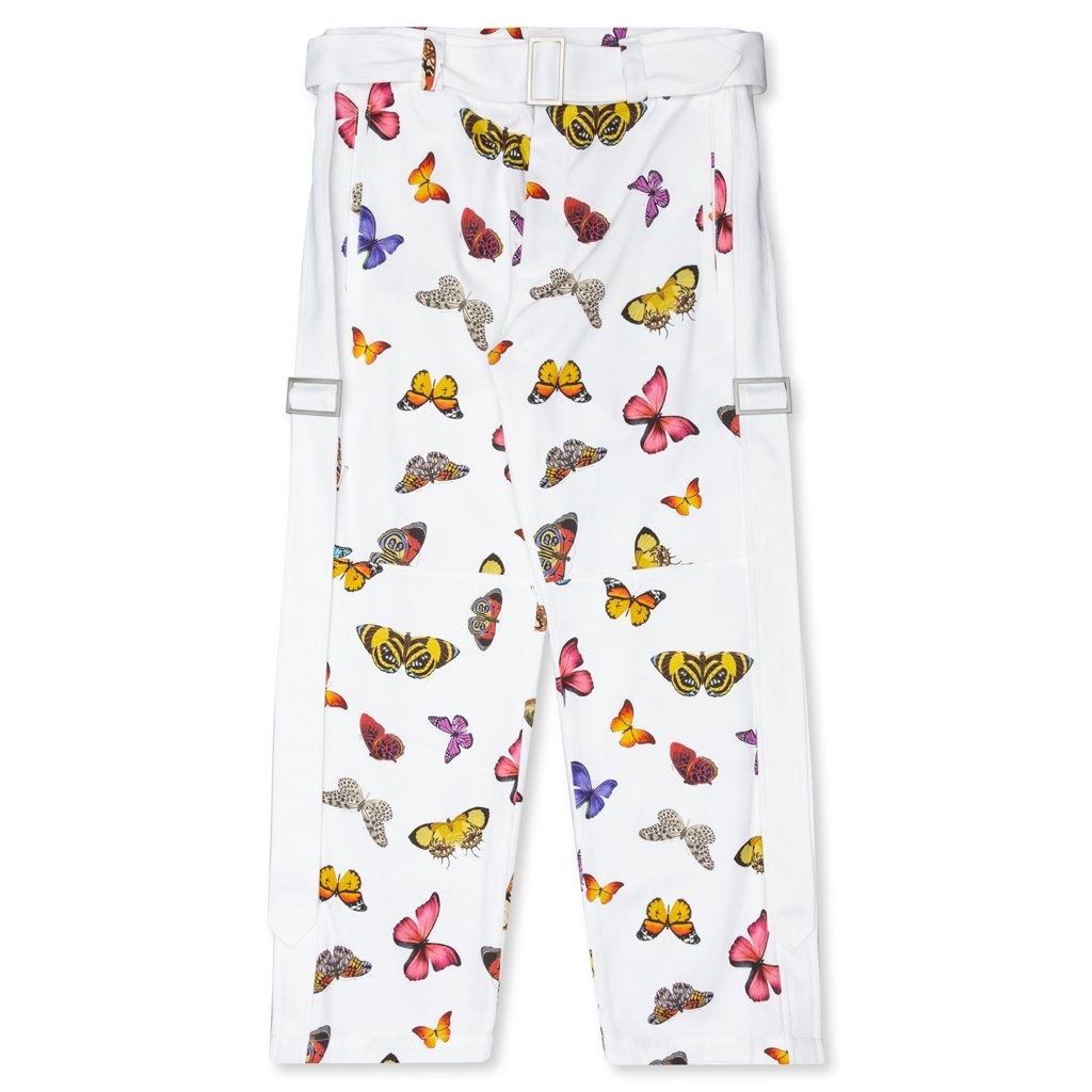 Stemming from a trip to Venice Beach, Francesco Ragazzi began Palm Angels with a coffee table book exploring the Los Angeles skateboarding scene. It was one picture he took that made him vision an image evoking the traditional representation of an angel, which would lead to the concept of Palm Angels. This Milan based label has perfectly blended high fashion with skateboarding inspired designs and 1970s slant. Pictured is the Palm Angels Butterfly Buckles Pants - White/Multi. FINAL SALE ITEM. NOT ELIGIBLE FOR RETURNS/CANCELLATIONS. PMCA066S207780140288 - 100% cotton - All over print - Waist and side seam buckles with straps - Made in Italy - Style no: PMCA066S207780140288