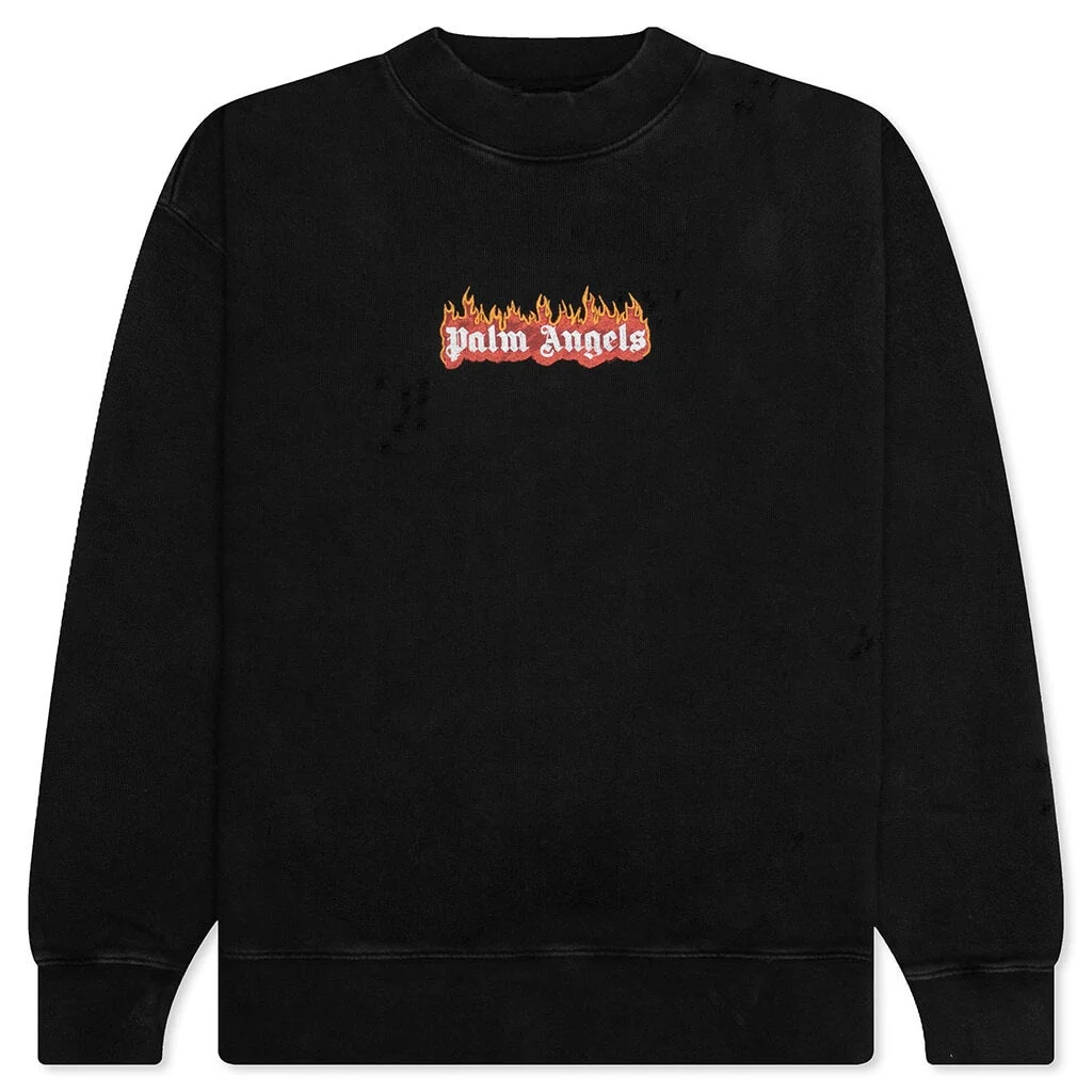 PALM ANGELS GD BURNING LOGO CREWNECK - BLACK/WHITE
