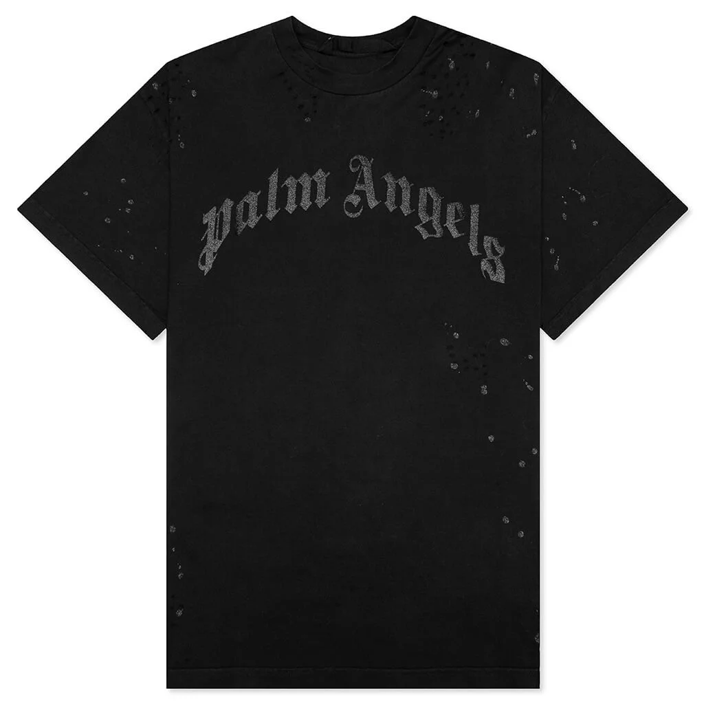 PALM ANGELS GLITTERED LOGO CLASSIC TEE - BLACK/BLACK