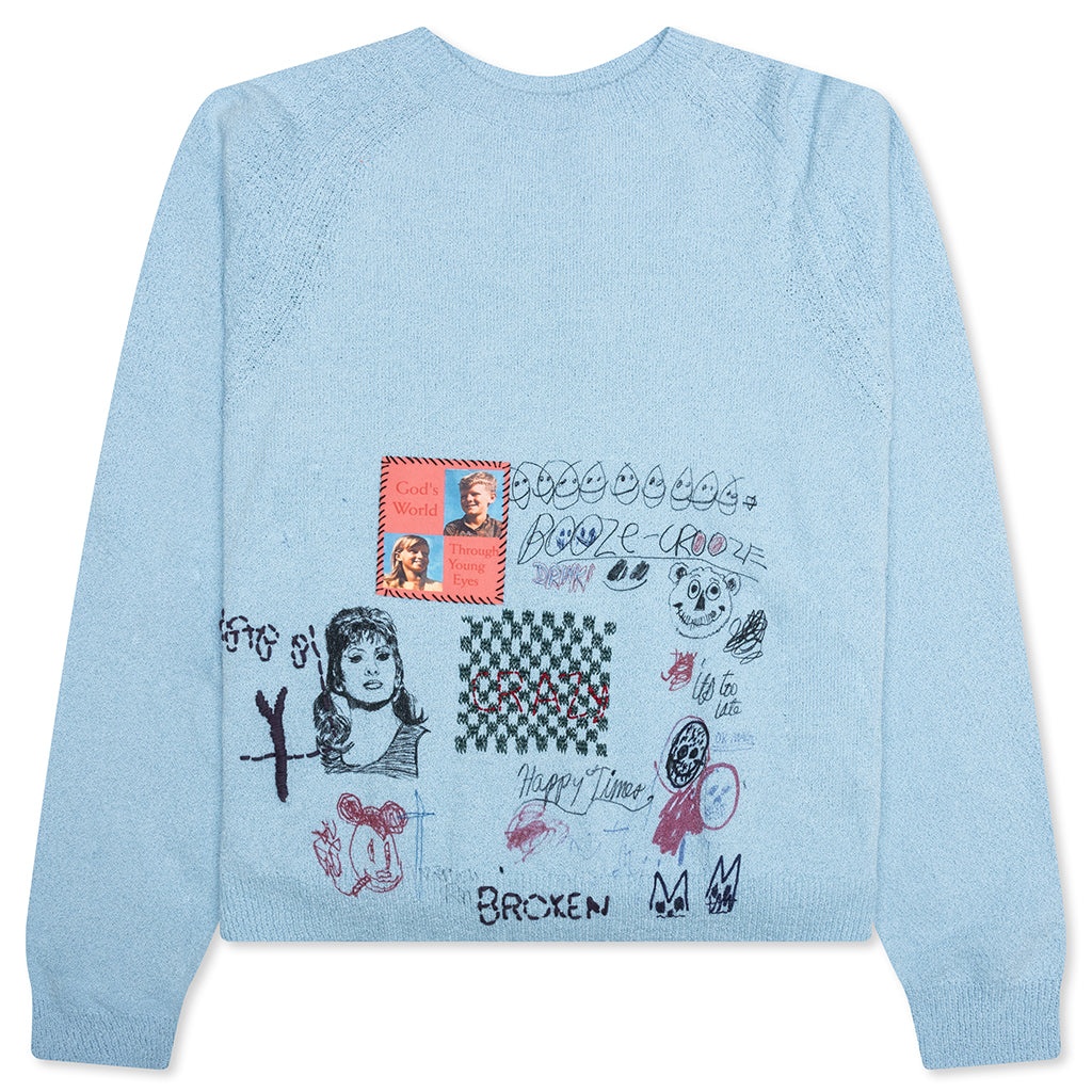 The Booze Crooze Knit Sweater blends delicate craftsmanship with a laid-back, oversized silhouette. Knit from fine 16-gauge Egyptian cotton, this 100% cotton sweater features a drop-shoulder fit and subtle hand-applied distressing for a textured, lived-in finish. Original JF artwork is printed at the front and back, accented with hand embroidery for a dimensional, personal touch. - 100% cotton - Fine 16-gauge Egyptian cotton knit - Oversized drop-shoulder fit - Hand-applied distressing - Embroidered and Printed graphics - Style no: 6U001Q1008BBY