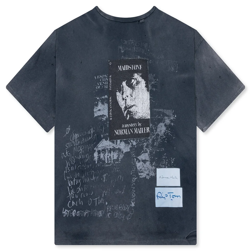 Crafted from 100% cotton Japanese jersey, the Maidstone Tee from Paly Hollywood delivers a distinct blend of texture, wear, and visual storytelling. Featuring a boxy, cropped fit, it's treated with a heavy ozone wash and sun-faded treatment for a naturally aged look. Hand distressing adds character, while screen-printed graphics bring a layered, expressive finish. THIS PRODUCT DOES NOT QUALIFY FOR HALLOWEEN SALE. - 100% Cotton - Vintage textured jersey fabric - Boxy, cropped fit - Crew neckline - Screen-printed graphics - Heavy Ozone wash and sun-faded treatment - Hand distressing details - Style No: 2U002Q3009-VBK