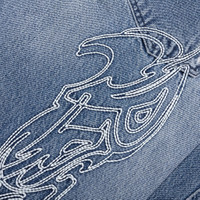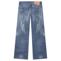 The PDF Channel Rich Kid Jeans reinterpret classic denim through an artful lens. Cut from cotton with a wide-leg silhouette, the jeans are decorated with finely embroidered graphics and finished with a faded wash treatment. Signature PDF Channel details include snap buttons at the cuffs, custom hardware, and rubber bandaid patches. Finished with a classic zip-fly and five-pocket design. - 100% Cotton - Wide-leg - Zip-fly - 5-pocket design - Embroidered graphics - Snap buttons at cuffs - Custom hardware - Rubber bandaid patches - Woven label tag - Style No: DFM03032DF121WHBLU