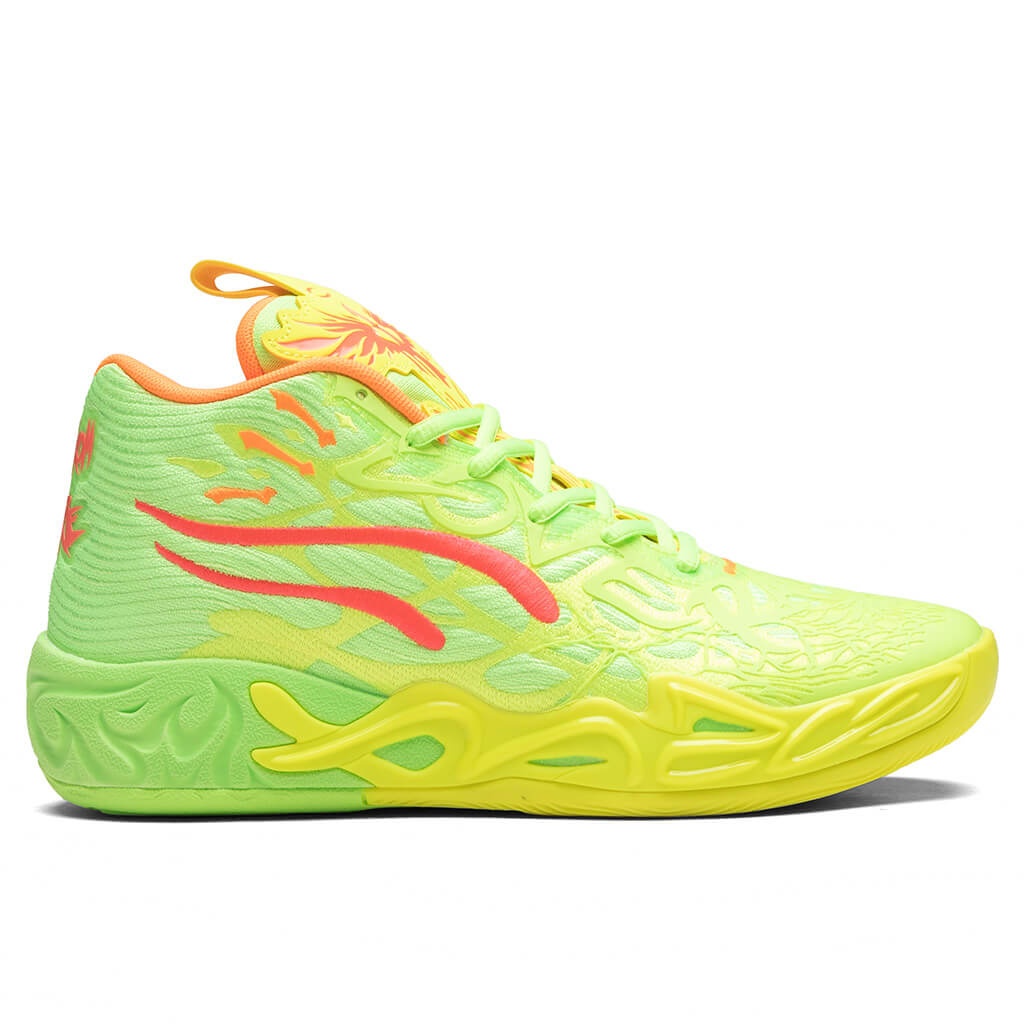 Built for players who shine on and off the court, the PUMA MB.04 'Gem' is the latest evolution of LaMelo Ball’s signature line. The MB.04 features a futuristic aesthetic that wraps the silhouette like an alien lifeform, engineered for performance and personality. This colorway blends vibrant yellow and green tones with sharp pink accents. A breathable, double-layered mesh upper delivers lightweight support, while raised, multi-zoned construction offers added structure and lockdown where you need it most. Underfoot, NITROFOAM™ and CMEVA cushioning combine to provide responsive energy return and comfort with every step, while a TPU heel counter adds lateral stability. - Mesh upper - Textured upper - Lace closure - Layered construction - TPU heel - Tongue tab - Rubber outsole - All sizes are listed in US Men's sizing unless stated otherwise - Style No: 311421-01