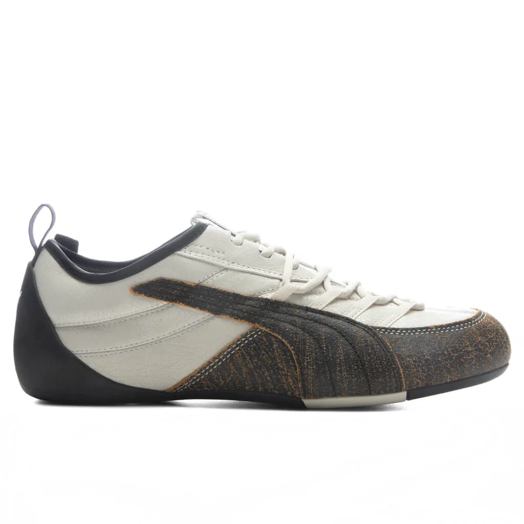 PUMA is a German-born sportswear brand celebrated for its deep-rooted heritage in motorsport and its ability to blend high-performance engineering with bold, street-ready aesthetics. Collaborating with New York-based womenswear fashion brand, Guizio, to present a new iteration on the Klim Low. Featuring a premium cowhide leather upper with a crinkled finish that offers a tactile, yet elegant feel. Designed with a clean monochromatic palette, the shoe is detailed with leather logo motif patches, cushioned collars, and a low-profile rubber outsole for a sleek look. PUMA x Guizio branding details highlight the collaboration and complete the silhouette. DUE TO THE NATURE OF THIS PRODUCT, ALL SALES ARE FINAL. THIS PRODUCT DOES NOT QUALIFY FOR DISCOUNTS OR SPECIAL PROMOTIONS. - Brands: PUMA, Guizio - Product Name: PUMA x Guizio Klim Low - Category: Lifestyle Sneakers - Colorway: Fudge/Canvas - Upper Material: Premium Cowhide Leather - Lining: Textile - Fit: Supportive, Low-Profile - Closure: Lace-Up - Details: Crinkled Finish, Leather Logo Patches, and Leather Piping - Rubber Outsole - Sizing: All sizes are listed in U.S. Men's sizing unless stated otherwise - Style Code: 406188-01