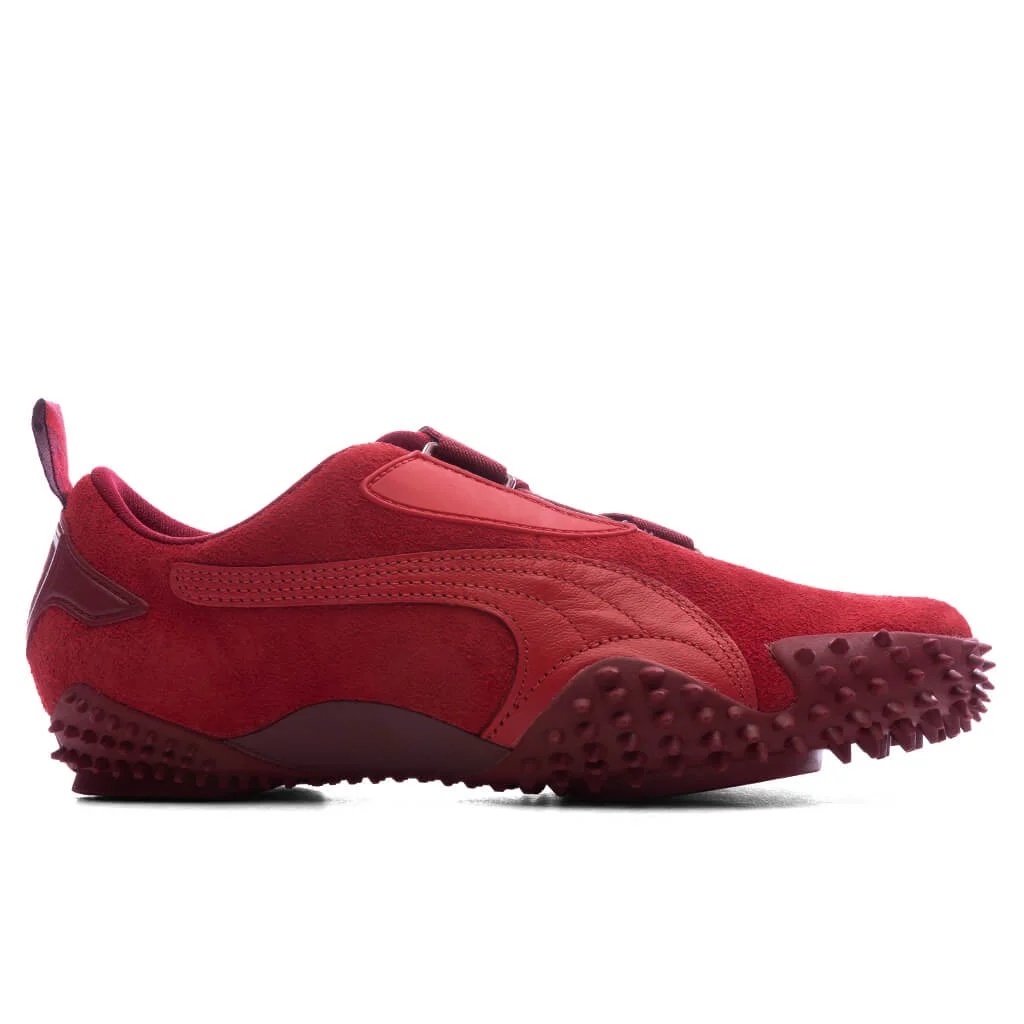 The Scuderia Ferrari HP 20 Years of Red Mostro Track Pants from PUMA celebrates the 20 year partnership between the motorsport-inspired brand and Italian car manufacturer, Ferrari. The iconic spiked sole remains untouched, while suede construction elevates the upper with texture and edge. A leather PUMA Formstrip cuts across the sidewall for contrast, finished with a hook-and-loop strap closure for a secure fit. PUMA and Ferrari branding details finish off the design. - Suede upper - Hook-and-loop strap closure - PUMA Formstrip pattern - Spiked outsole - PUMA and Ferrari branding details - All sizes listed in US Men's sizing unless stated otherwise - Style no: 309260-01