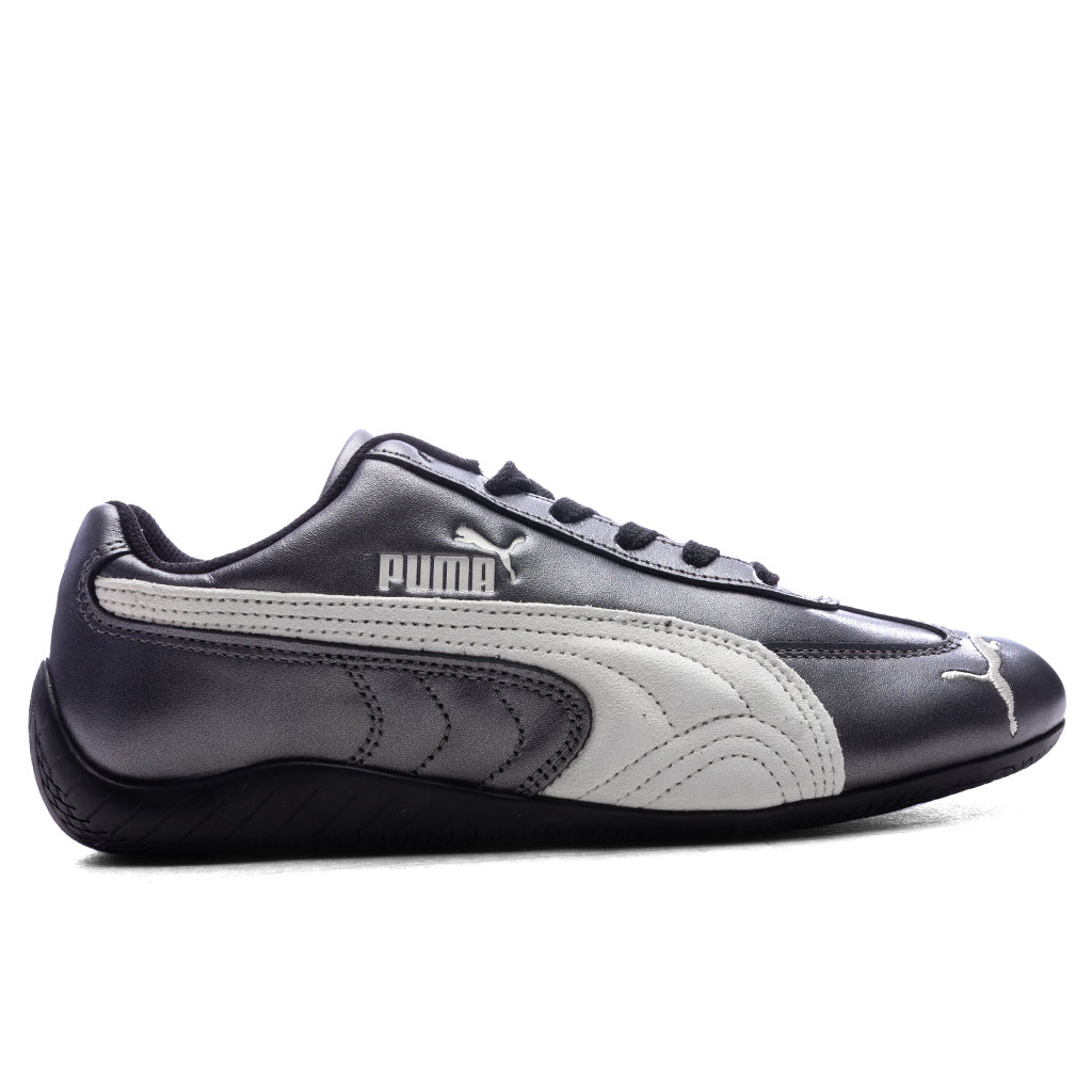 The Puma Women's Speedcat Metallic reimagines a motorsport classic with a sleek, street-ready edge. Built with a premium leather upper and sculpted rubber outsole, the design shines with a metallic-look. Signature details like a suede Puma Formstrip and embroidered and embossed branding decorate the shoe. A breathable textile lining rounds out the design, offering comfort and heritage in one sleek silhouette. - Leather upper - Suede overlay - Lace closure - Puma Formstrip - Embroidered branding - Embossed branding - Rubber outsole - All sizes listed in U.S. Women's sizing unless stated otherwise - Style No: 405357-02