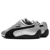 The Puma Women's Speedcat Metallic reimagines a motorsport classic with a sleek, street-ready edge. Built with a premium leather upper and sculpted rubber outsole, the design shines with a metallic-look. Signature details like a suede Puma Formstrip and embroidered and embossed branding decorate the shoe. A breathable textile lining rounds out the design, offering comfort and heritage in one sleek silhouette. - Leather upper - Suede overlay - Lace closure - Puma Formstrip - Embroidered branding - Embossed branding - Rubber outsole - All sizes listed in U.S. Women's sizing unless stated otherwise - Style No: 405357-01