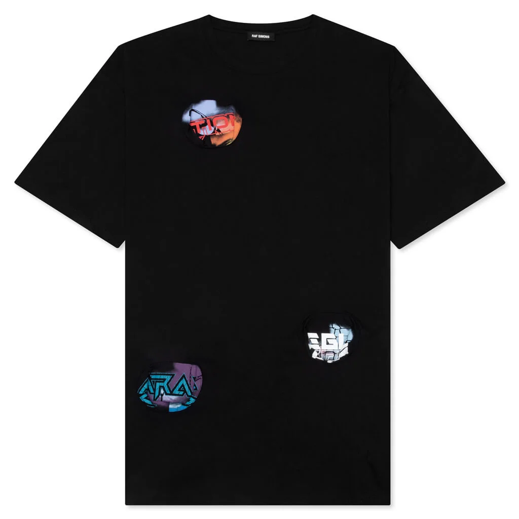 RAF SIMONS OVERSISED T-SHIRT WITH PRINTED POCKET HOLES - BLACK