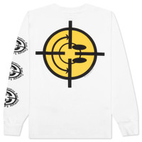 ReadyMade introduces the Target L/S Tee. Taking on a cotton construction, the silhouette utilizes ribbed detailing at the neckline and cuffs. Flocked branding and graphics can be found at the front, rear, and sleeves for a finishing touch. - 100% cotton - Ribbed neckline - Flocked branding/graphics - Ribbed cuffs - Style No: RE-CO-WH-00-00-203
