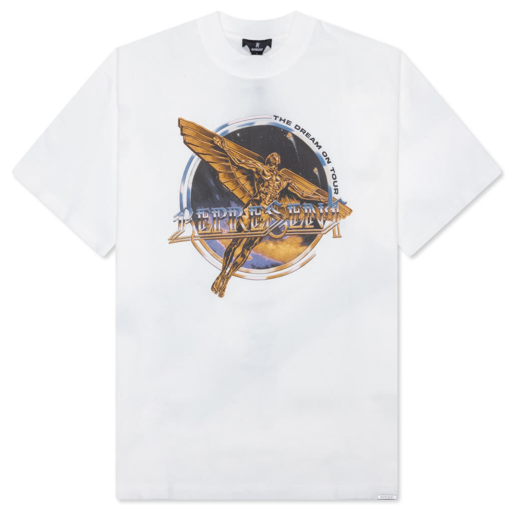 The Golden Tour T-Shirt is the latest addition to Represent's t-shirt collection. Cut from premium cotton with an oversized fit, this tee features a ribbed crew neckline. Screen-printed graphics are showcased across the front and back. Finished with the signature Represent metal bar logo at the hem. - 100% Cotton - Oversized fit - Crew neckline - Ribbed collar - Screen-printed graphics - Metal Represent bar logo - Style No: MLM100823-72