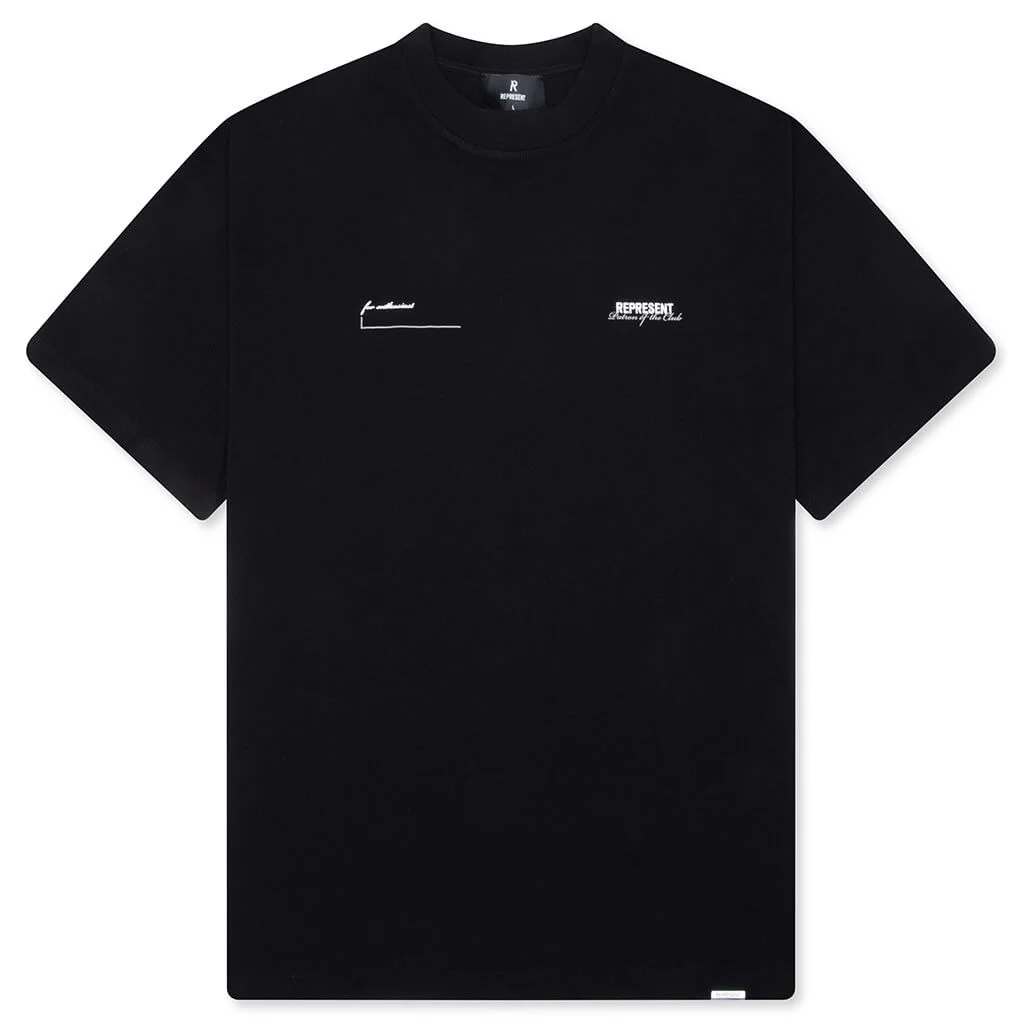 The Patron of the Club T-Shirt is the latest addition to Represent's t-shirt collection. Cut from premium cotton with an oversized fit, this tee features a ribbed crew neckline. Screen-printed graphics are showcased across the front and back. Finished with the signature Represent metal bar logo at the hem. - 100% Cotton - Oversized fit - Crew neckline - Ribbed collar - Screen-printed graphics - Metal Represent bar logo - Style No: MLM4274-001