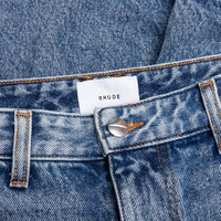 The Rhude Cargo Denim Baggy Short brings a utilitarian edge to a vintage-washed staple. Crafted from 100% cotton with a durable polyester-cotton pocket lining, the short features a long rise and relaxed silhouette. Functional details include six pockets—highlighted by deep folded back and lap pockets—along with a zip-up fly, YKK hardware, and a custom-branded button. PS25SH050123006 - 100% Cotton - Pocket lining: 65% Polyester, 35% Cotton - YKK zip - Custom branded button - Zip-up fly - Six pockets - Deep folded back and lap pockets - Long rise - Vintage washed - Style No: RHPS25SH050123006