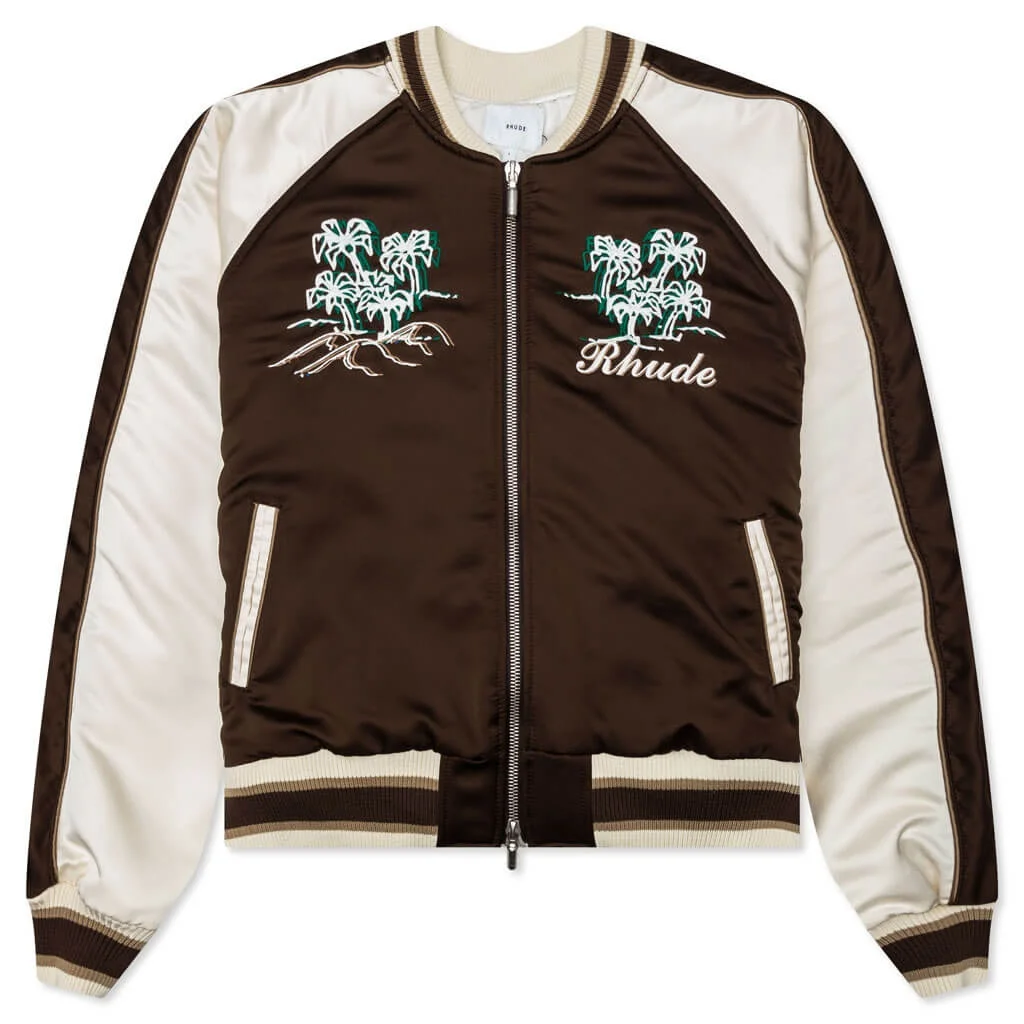 CREPE SATIN SOUVENIR JACKET - BROWN/CREAM