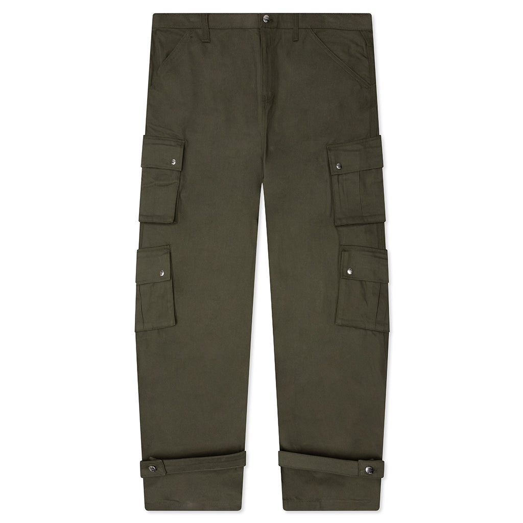The Desert Cargos in Olive combine utilitarian design with elevated details. Constructed from durable cotton twill, these cargos feature a relaxed fit for comfortable wear. Twin patch cargo pockets and front thigh pockets offer ample storage, while custom Rhude pill hardware adds a signature touch. FW24PA110120024 - 100% Cotton twill - Relaxed fit - Custom Rhude pill hardware - Twin patch cargo pockets - Pockets at front thighs & twin back custom pockets - Style No: RHFW24PA110120024