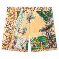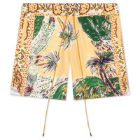 The Rhude Palmina Silk Short makes an impression with its luxurious silk construction. The design is spotlighted by the all-over Palmina print. An elasticated waistband, twin side pockets, and a singular back pocket add to the aesthetic. Exaggerated front drawstrings complete the look. SS24SH08174108 - 100% Silk - Elasticated waistband - Exaggerated drawstrings - Side seam pockets - Single back pocket - All-over print - Style No: RHSS24SH081741080108