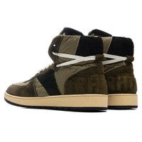Rhude’s vintage and worn-in approach to footwear is present in the Rhude Recess Hi. The high-top sneaker features a leather upper colorblocked throughout the exterior. Distressed and fading details are seen throughout the design, while perforated holes make an appearance at the toe-box. An off-white lace-up closure is placed, while the tongue receives a padded material for additional comfort. A suede logo at the heel and rubber midsole and outsole complete the look. - Leather upper - Off-white lace-up closure - High-top design - Distressed detailing - Faded detailing - Padded tongue - Suede logo - Rubber midsole - Treaded rubber outsole - All sizes are listed in U.S. Men’s sizing unless stated otherwise - Style No: RHFW21FO20040552