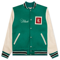 RHUDE TILE VARSITY JACKET - MENTHOL/CREME