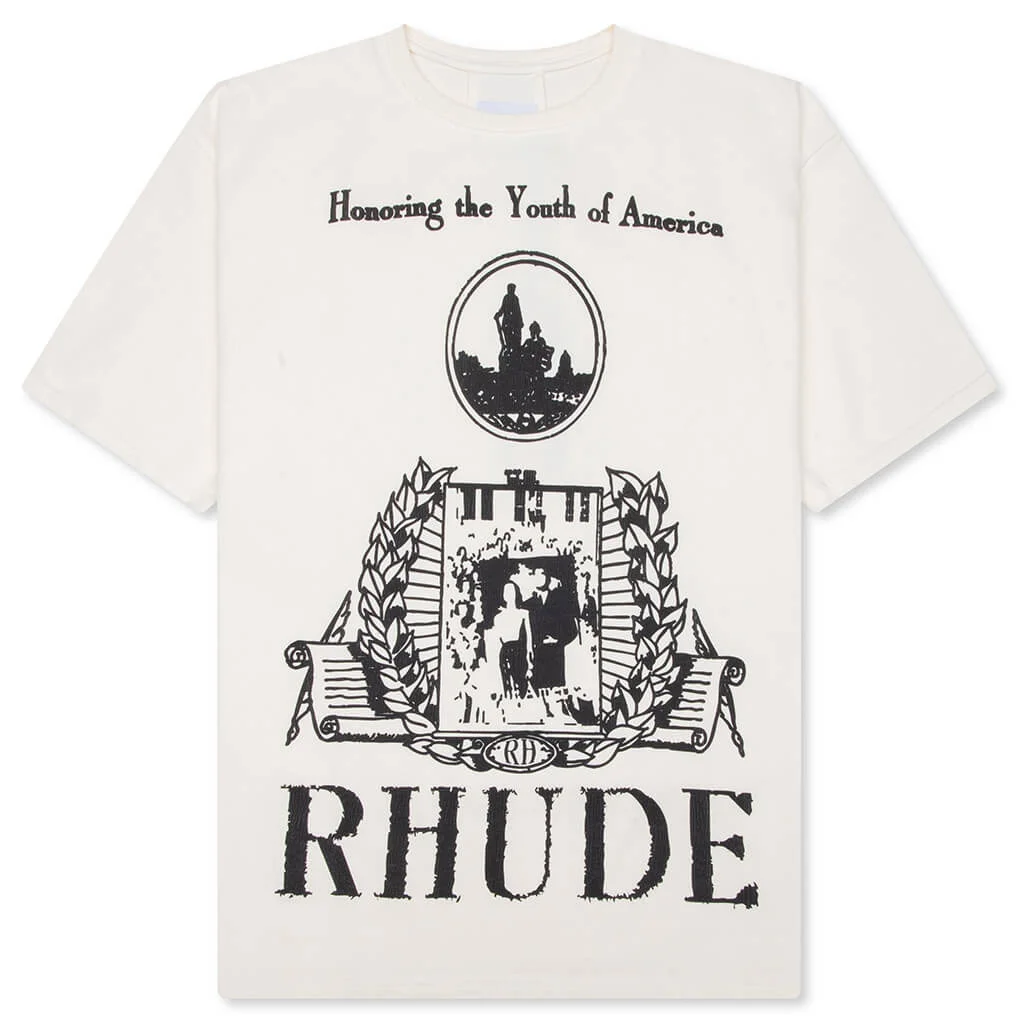 Rhude presents the Youth Of America Tee in their latest collection. Cut from premium cotton with a relaxed fit, this tee showcases screen-printed graphics that stay true to signature Rhude personality. Rounding out the design is a ribbed crew neckline for all-day comfort. - 100% Cotton - Relaxed fit - Crew neckline - Ribbed collar - Screen-printed graphics - Style No: RHFW25TT060123166