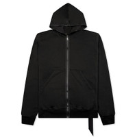 From Rick Owens DRKSHDW Spring/Summer '25 collection, the Gimp Hoodie makes an impression. Composed of heavyweight cotton jersey, the Gimp style has a hip-length with long sleeves. The garment has a front zipper closure with exposed zipper tape that extends through the hood, allowing it to be zipped all the way up to cover the face. Some finishing touches include front pockets, ribbed trims, and a single seam running down the spine. - 100% Cotton - Hooded collar - Zipper closure - Ribbed trims - Front pockets - Style No: DU01E3291-F-09
