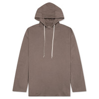 The Peter Hoodie is crafted from heavyweight GOTS-certified organic cotton fleece with a structured yet soft feel. It features a garment-dyed finish, dropped shoulders, and raw edge detailing at the cuffs. A rolled hem and drawstring hood complete the relaxed silhouette, while a logo-woven webbing strap is stitched inside for a subtle branded touch. - 100% Cotton - Garment dyed - Attached hood - Adjustable drawstring - Raw edge at cuffs - Dropped shoulders - Rolled hem - Style No: DU01E3280-FP-34