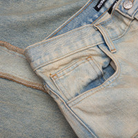 Crafted from premium US denim, the Fathers Garden He Rose 3 Jeans by Rivington Roi Rebis embody raw expression through artful construction. Each pair is hand-distressed and stained, offering a one-of-a-kind finish that blurs the line between utility and experimental design. The dual waistband—complete with both button and drawstring closures—adds a deconstructed, layered look, while tonal repairs and abstract paneling emphasize the handcrafted nature of the silhouette. Finished in 100% cotton and made in Los Angeles, these jeans reflect RRR’s signature approach: rooted in storytelling, rebellion, and reinvention. HRR3 PA55 LIGH - 100% Cotton Denim - Made in Los Angeles - Five-pocket design - Button and drawstring closure - Dual waistband - Hand distressing - Style No: HRR3-PA55-LIND