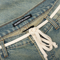 The Fathers Garden Repentant Pant from RIVINGTON roi Rebis is made from US denim, offering a sturdy and authentic feel. It features hand distressing and hand staining throughout, giving each pair a unique, worn-in look. The classic 5-pocket design adds practicality, while the paneling on both legs enhances the rugged, vintage-inspired style of these jeans. FGRP PA55 LIGH - 100% Cotton - US denim - Vintage wash - Hand distressing - Hand staining - 5 Pocket design - Paneling detail - Shoestring belt - Style No: FGRP-PA55-LIND