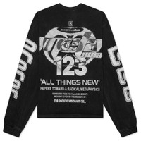 RIVINGTON roi Rebis introduces the Meta Alma CVA L/S Tee in its latest collection. Cut from pure cotton, this medium-weight tee is designed to have an oversized, boxy fit. Treated with a heavy stone wash, the tee feels time-worn and soft. Screen-printed graphics are seen on both the front and back adding a unique artistic flair. Some finishing touches include the crew neckline and ribbed trims. - 100% Cotton - Oversized fit - Medium-weight jersey - Crew neckline - Ribbed trims - Screen-printed graphics - Heavy stone wash - Style No: MTL2-LS05-VBLK