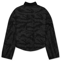 RIVINGTON roi Rebis elevates classic shirting with the Meta Camo Abraxas Shirt. Constructed from cotton, this piece is cut to have a cropped fit with a refined silhouette and adorned in a unique meta-camo print. Screen-printed graphics and an embroidered logo add a branded touch. Other details include a mock neck, button front, and chest pocket. MTCM SI06 BLAC - 100% Cotton - Cropped fit - Mock neck - Button-up front - Chest pocket - Screen-printed graphics - Embroidered branding - Style No: MTCM-SI06-BKCM