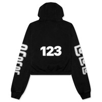 Layer up with the Metanoia USO CVA Hoodie from RIVINGTON roi Rebis. Cut from cotton fleece, this hoodie is designed to have an oversized, boxy fit with drop shoulders. Treated with a heavy stone wash, the piece feels time-worn and soft. Screen-printed graphics are seen on both the front and back adding a unique artistic flair. Some finishing touches include the classic hood, ribbed trims, and kangaroo pocket. - 100% Cotton - Oversized fit - Drop shoulders - Classic hood - Ribbed trims - Screen-printed graphics - Kangaroo pocket - Heavy stone wash - Style No: METC-HD00-JBLK