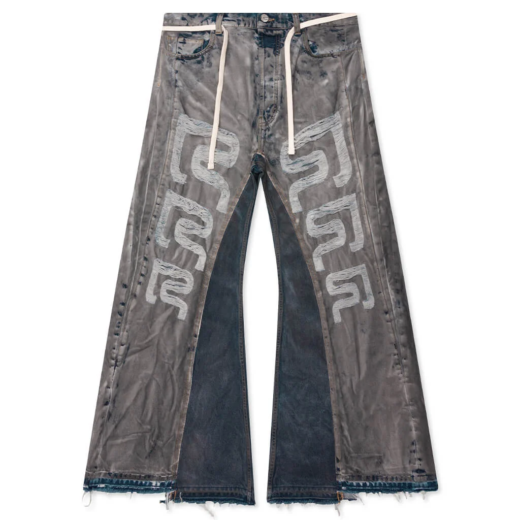 The Hermetic He Rose 2 showcases signature RIVINGTON roi Rebis edge. Constructed from cotton denim, these jeans are designed with a wide-leg for relaxed fit. A classic button-fly is paired with a detachable drawstring belt for a touch of edge. Standout details include contrast inner leg panels, 'RRR' rip designs, and the wax-coating finish. Finished with a debossed leather patch and custom hardware. DHR2 PA00 BLAC - 100% Cotton - Wide leg - Wax-coated - Contrast inner leg panels - Button-fly - Detachable drawstring - 5-pocket design - 'RRR' rip designs - Debossed leather patch - Custom hardware - Style No: DHR2-PA00-BLCK