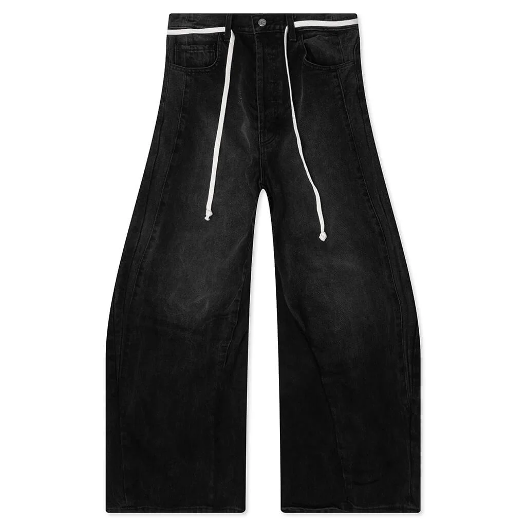 Subtle yet bold, RIVINGTON roi Rebis presents the Meta He Rose 2 Pant. Constructed from cotton denim, these jeans are designed with a wide-leg for a relaxed silhouette. A classic button-fly is paired with a detachable drawstring belt for a touch of edge. Signature RIVINGTON roi Rebis branding can be found on the debossed leather patch and custom hardware. - 100% Cotton - Wide leg - Button-fly - Detachable drawstring - 5-pocket design - Debossed leather patch - Custom hardware - Style No: MHR2-PA00-BLCK