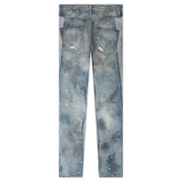 The Repented Pant in Indigo is made from US denim, offering a sturdy and authentic feel. It features hand distressing and hand staining throughout, giving each pair a unique, worn-in look. The classic 5-pocket design adds practicality, while the distressing on both legs enhances the rugged, vintage-inspired style of these jeans. Ideal for those who appreciate denim with character and craftsmanship. REPN PA52 INDI - 100% cotton - US denim - Hand distressing - Hand staining - 5 Pocket design - Distressing on both leggs - Style No: REPN-PA52-INDI