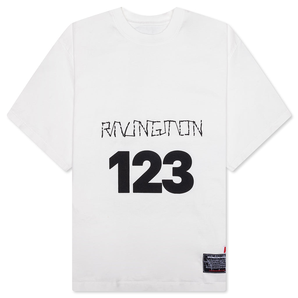 RIVINGTON roi Rebis introduces the USO 123 CVA Tee in its latest collection. Crafted from 100% cotton, this medium-weight garment is treated with a heavy stone wash, adding a vintage feel. The tee has an oversized, boxy fit. Screen-printed and embroidered graphics are seen on both the front and back, adding a unique artistic flair. Some finishing touches include the crew neckline and ribbed trims. All color fades, tears, rips, discoloration, and distressing of fabrics are intentional. CUSO SS90 MAX - 100% Cotton - Made in Los Angeles - Oversized fit/boxy - Medium-weight jersey - Vintage stone wash - Crew neckline - Ribbed trims - Screen printed graphics - Embroidered details - Style No: CUSO-SS90-MXWH