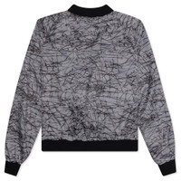The RtA Atticus Jacket is a must-have outerwear streetwear apparel item. Composed of polyester, the jacket utilizes a ribbed neckline along with ribbed detailing at the cuffs and hem. A snap front closure offers added detailing, while the all-over line graphics finish the rest of the look. - 100% polyester - Snap front closure - Ribbed trims - All-over print - Hand pockets - Style No: MH22W400-W1295BLKCO