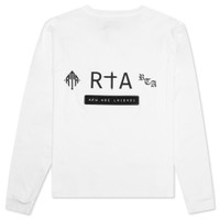 RtA’s grunge Los Angeles aesthetics are presented in the Lawrence Classic L/S T-Shirt. Composed of cotton, the silhouette includes a ribbed neckline with additional ribbed detailing at the cuffs. Screen-printed graphics reside at the front, with additional branding at the rear. The logo patch at the rear finishes the design. - 100% cotton - Ribbed neckline - Screen-printed graphics - Screen-printed branding - Logo patch - Style No: MS22-A832-0049WUPLG