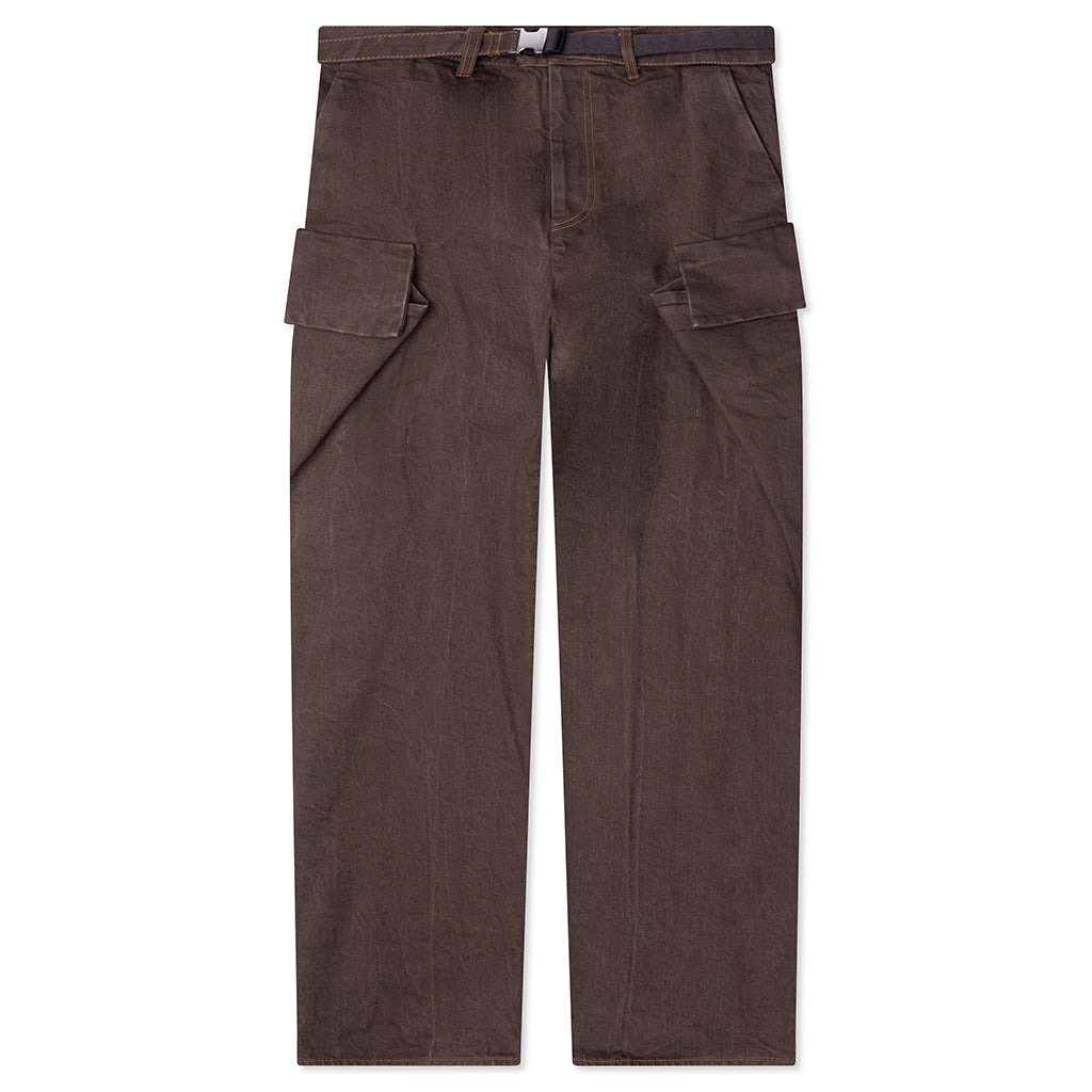 Crafted from 100% heavyweight cotton denim, the Sacai Denim Pants combine utilitarian structure with elevated detail. Designed with a relaxed and tapered fit, the pant features a zip-fly with button closure and a signature, detachable fabric belt. Aside from traditional front and rear pockets, the piece stands out with inset cargo pockets. Finished with a washed treatment for softness and a lived-in feel. - 100% Cotton - Relaxed, tapered fit - Washed treatment - Zip-fly with button closure - Detachable belt - Side-entry pockets - Rear pockets - Inset cargo pockets - Style No: 25-03755M-601