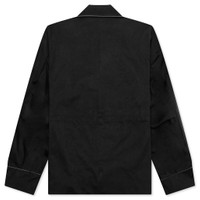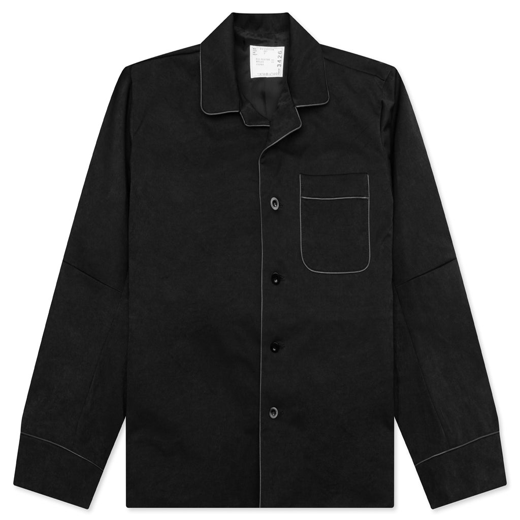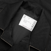 The Faux Suede Jacket in Black from Sacai features a refined blend of polyester and nylon, offering a sleek and structured silhouette. Designed with a notched lapel and button closure, this jacket includes a patch pocket and concealed cord-lock drawstring at the waist for adjustable fit. Pleats at the sleeves add subtle detail, while the full cupro satin lining provides a smooth, luxurious feel. - 60% polyester, 40% nylon - Lining: 100% cupro - Notched lapel - Button closure - Patch pocket - Concealed cord-lock drawstring at waist - Pleats at sleeves - Full cupro satin lining - Style No: 24-03426M-001