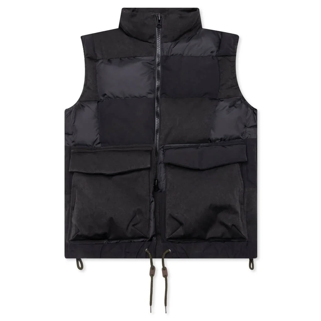 Crafted in a timeless outdoor fashion, the Faux Suede Mix Vest features large flap hand pockets with side entry, providing optimal storage and utility. The addition of a dual front zip pocket completes the piece, ensuring both practicality and style. - Padded Design - Quilted - Suede Panels - Funnel Neck - Drawstring Hem - Made in Japan - Style No: 23-03211M-001