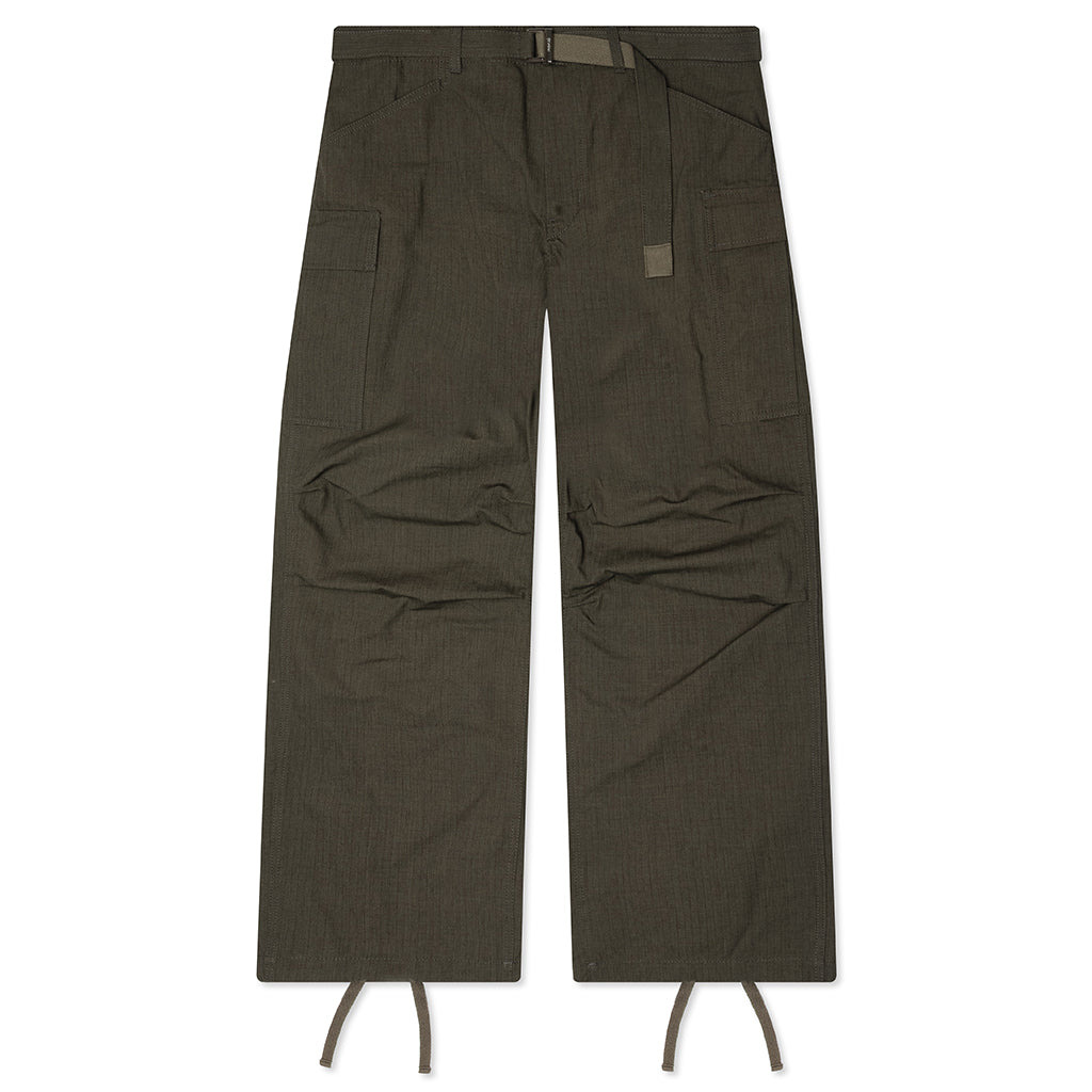 Constructed from a cotton-nylon blend, the Sacai Rip Stop Pants channel utilitarian personality. Designed with a relaxed and tapered fit, the pant features a zip-fly with button closure and a signature, detachable fabric belt. Side-entry, rear, and cargo pockets provide ample storage, while drawstring cuffs complete the look. - 53% Cotton, 47% Nylon - Zip-fly with button closure - Detachable belt - Side-entry pockets - Rear pockets - Cargo pockets - Drawstring cuffs - Style No: 25-03774M-501