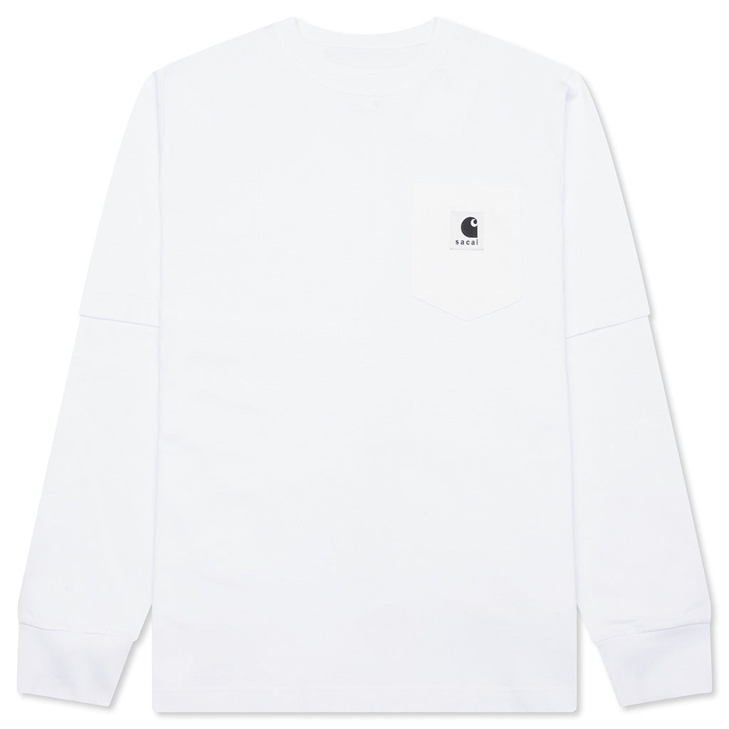 SACAI X CARHARTT WIP COTTON JERSEY L/S T-SHIRT - WHITE