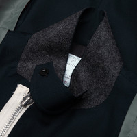 The Suiting X Nylon Twill Jacket in Navy/Khaki from Sacai blends nylon with contrasting polyester and wool for a striking look. It features a two-way asymmetric front-zip closure and a stand collar, adding a modern twist to classic outerwear. Front welt pockets, a sleeve zip pocket, and ribbed cuffs and hem provide both style and functionality. The jacket is lined with cupro and filled with polyester for added comfort and warmth. - 100% nylon with 70% polyester, 30% wool contrast - Two-way asymmetric front-zip closure - Stand collar - Front welt pockets; sleeve zip pocket - Ribbed cuffs and hem - Cupro lining, with 100% polyester fill - Style No: 24-03419M-262