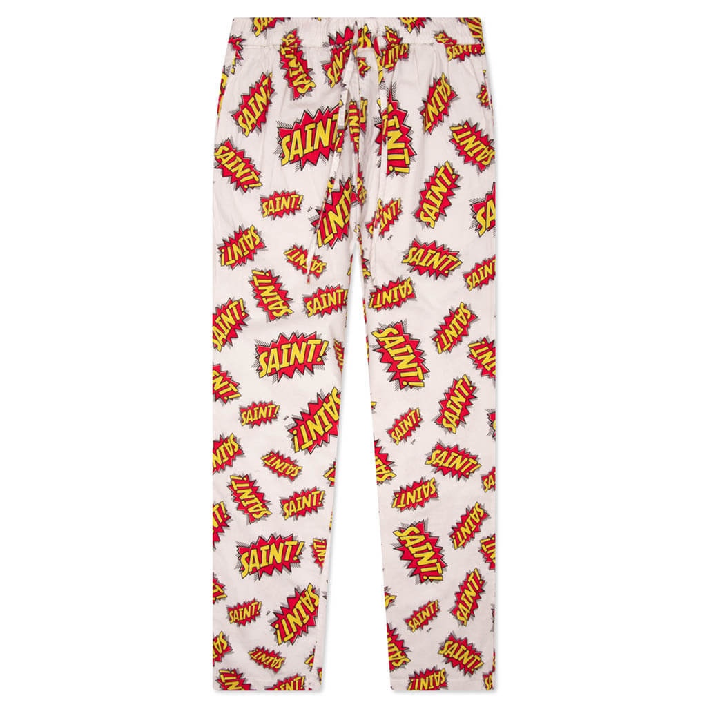 The Saint Michael POW Pajama Pant makes an impression on any apparel collection. Composed of cotton, the pants are made for a relaxed and straight leg fit. An elastic drawstring waistband is seen, while the all-over graphics wrap up the rest of the design. - 100% cotton - Elastic drawstring waistband - Screen-printed graphics - Style No: SM-A22-0000-028