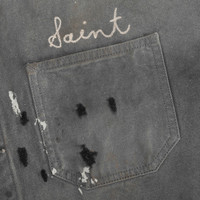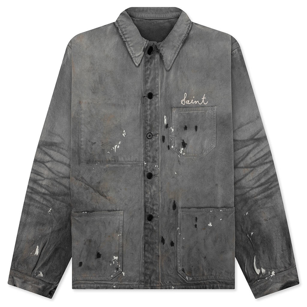 Saint Michael reinterprets classic workwear through a rebellious lens with the Coverall. Crafted from durable cotton canvas, the jacket features heavy distressing, paint splatter detailing, and a washed black finish for a worn-in, vintage aesthetic. Three patch pockets at the front add utility, while tonal stitching and “Saint” embroidery at the chest complete the look. Designed with a relaxed fit, this piece delivers bold character and signature Saint Michael craftsmanship. - Cotton canvas - Button closure - Classic collar - Heavy distressing - Chest pocket - Hand pockets - Paint splatter - Style No: SM-HR8-0000-061
