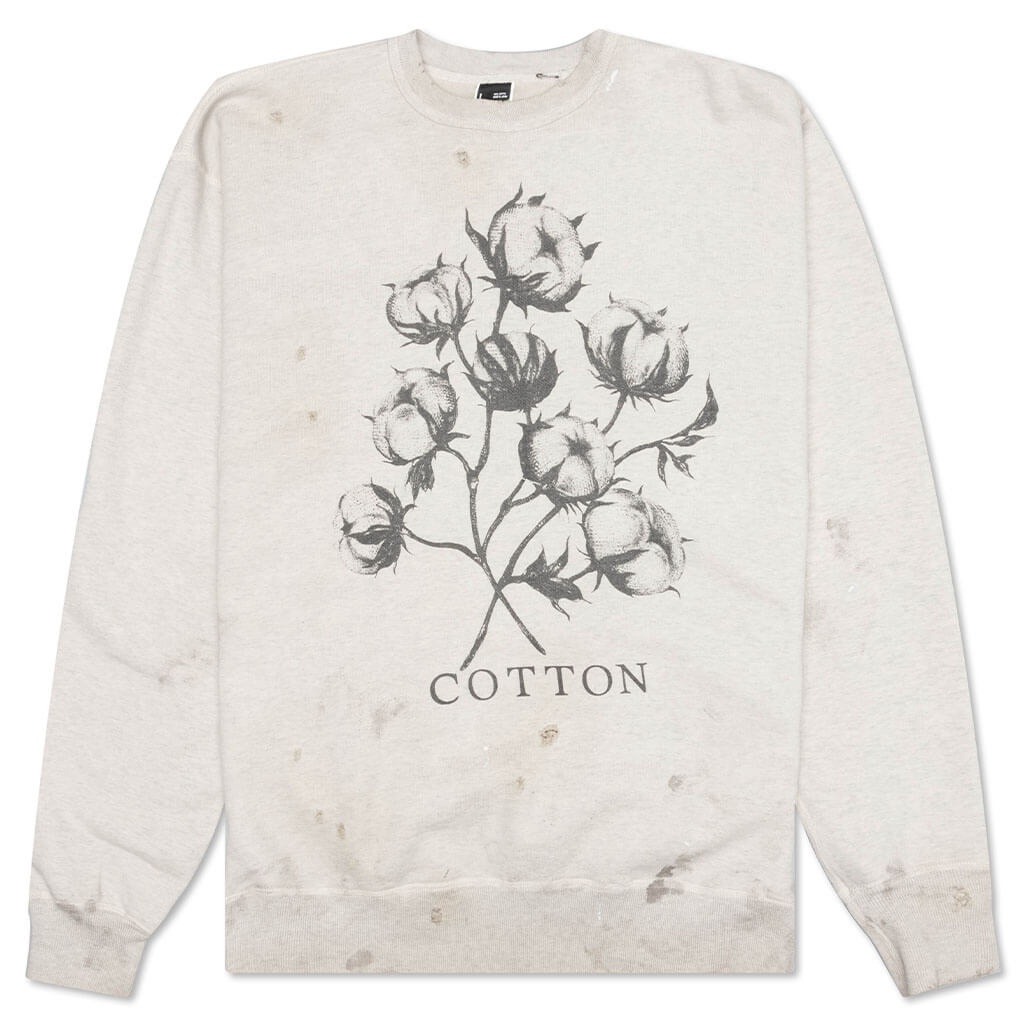 Upgrade your current favorite sweatshirt to the Saint Michael Cotton Sweatshirt. Spotlighting distressed details within the vintage washed silhouette, the design includes ribbed detailing at the neckline, cuffs, and hem. Screen-printed branding resides at the face, while additional subtle branding makes its way to the rear for a finished aesthetic. - 100% cotton - Vintage wash - Distressed details - Screen-printed branding - Ribbed neckline - Ribbed cuffs - Ribbed hem - Style No: SM-S22-0000-067-GRY