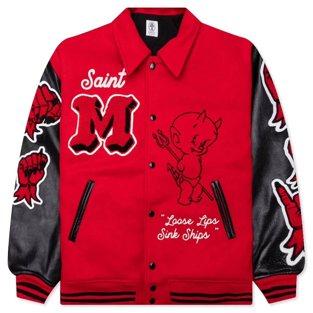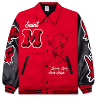 SAINT MICHAEL DEVIL VARSITY JACKET - RED