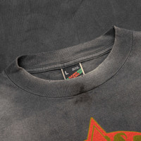 The Saint Michael x Denim Tears Saint Tears S/S Tee in Black delivers a bold look with its boxy fit and vintage treatment. Made from soft cotton, the tee features slight distressing for a worn-in feel. Printed graphics on the front and back add a distinct touch, making this collaboration piece a standout in any wardrobe. - 100% Cotton - Boxy fit - Vintage treatment - Slight distressing - Printed graphics on front and back - Style No: SM-YS1-0000-C45