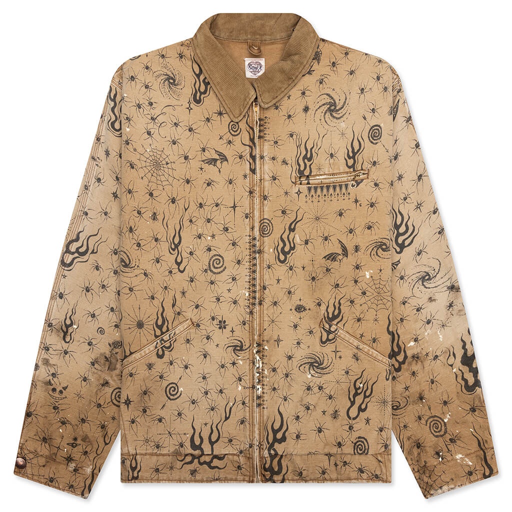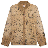 The MX6 Detroit Jacket from Saint Michael and Dr. Woo is a workwear staple with an elevated edge. Constructed from 100% cotton, the jacket features a front zip closure, a zip-fastened chest pocket, and dual welt pockets for everyday functionality. Press-stud cuffs round out the details, adding a touch of utilitarian polish. Minimal branding keeps the focus on form and texture, letting the collaboration speak through craftsmanship and subtle design language. - 100% Cotton - Zip closure - Classic collar - Vintage wash - Embroidered details - Hand pockets - Zipper chest pocket - Distressing - Style No: SM-HR8-0000-C43