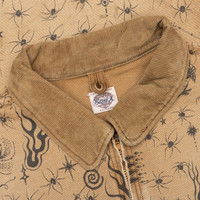 + Dr. Woo Corduroy-Trimmed Distressed Printed Cotton-Canvas Jacket Beige